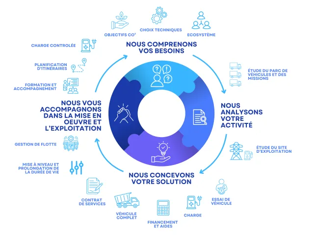 Mener la transition énergétique de vos activités peut paraître long et fastidieux. Renault Trucks réunit ses experts pour vous accompagner tout au long de ce processus.